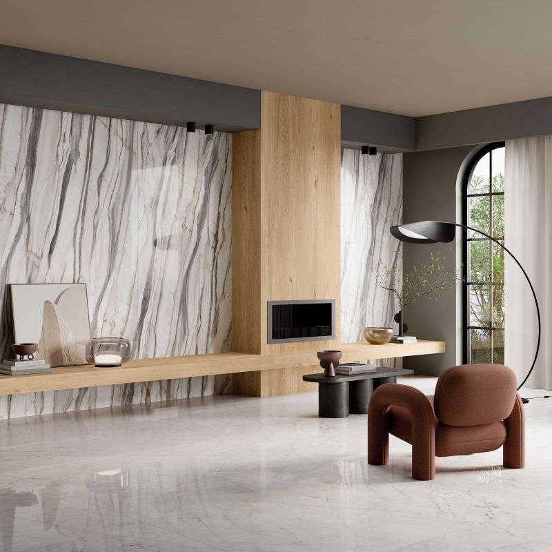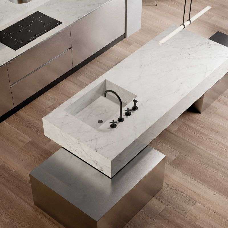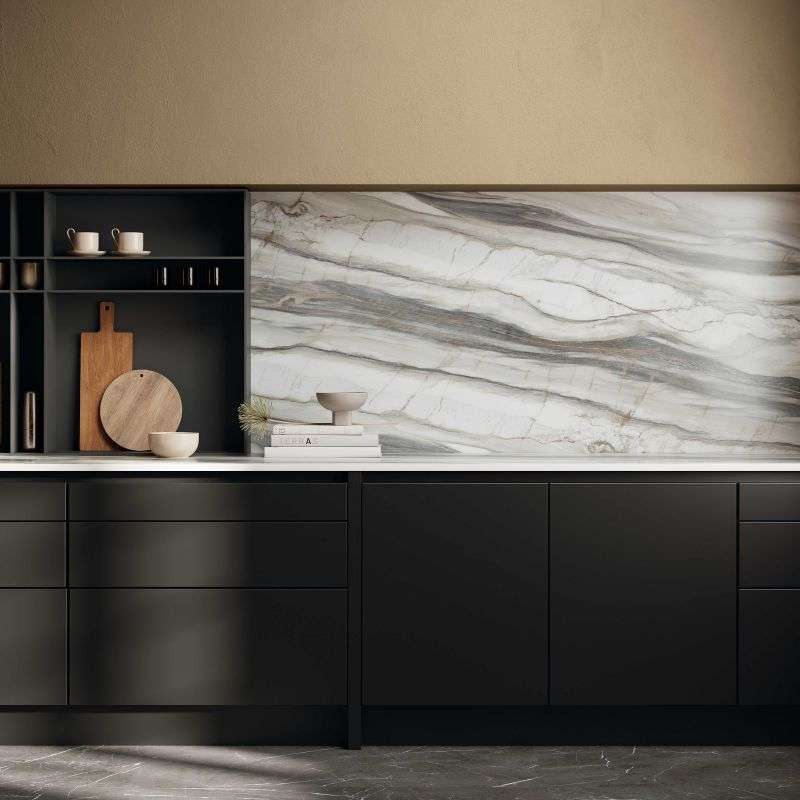 ABK con SENSI 900 celebra le varietà marmoree che, in architettura, hanno segnato la nascita del “lusso moderno” di inizio del secolo scorso, caratterizzato da un’eleganza sobria e lineare all’interno della quale la ricchezza dei materiali è la vera protagonista. SENSI 900 comprende alcune varietà classiche come Bianco Carrara, che si apprezza per l’estetica sobria e la purezza del fondo, Stone Grey, dal sofisticato tono grigio fango, e Precious Black, elegante marmo nero impreziosito da una trama di venature dorate. Completano la gamma le lastre più decorative Oyster Gold, Oyster White e Venezia Nuvola, articolo ispirato ai pavimenti in seminato, che valorizza la tridimensionalità delle nuove superfici Antique 3D.